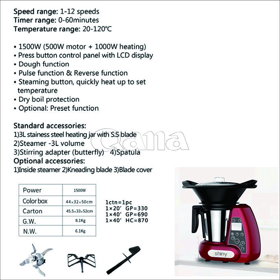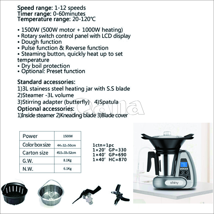 QANA Thermomixe Style 10 in 1 multi-function blender mixer baby robot cooker food processor